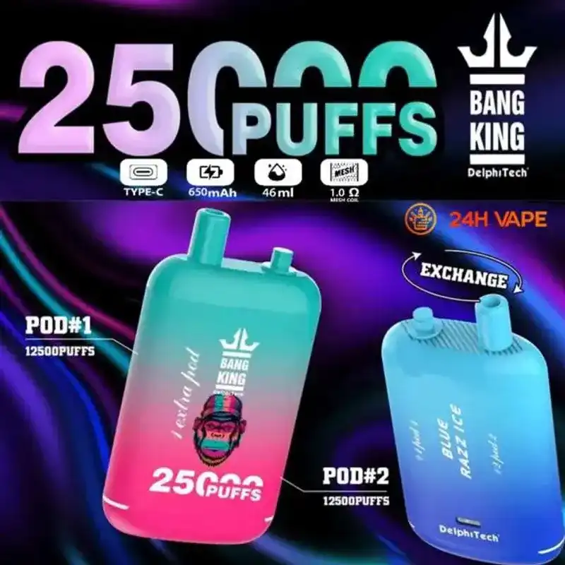 Bang King 25000 Puffs Double Warehouse Disposable Vape Pod, a revolutionary vaping device for extended satisfaction.