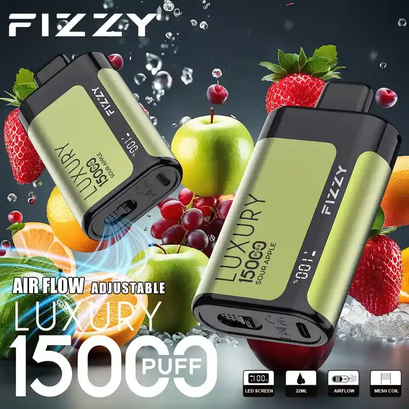 Fizzy Luxury 15K (15000) Puffs Disposable Vape, where high-end craftsmanship meets exceptional flavor. With a whopping 15,000 puffs and a sophisticated design, this disposable vape offers an unparalleled vaping experience, perfect for both newcomers and seasoned enthusiasts. Enjoy a variety of fresh flavors while keeping track of your battery life and e-juice levels with its convenient LCD screen.
