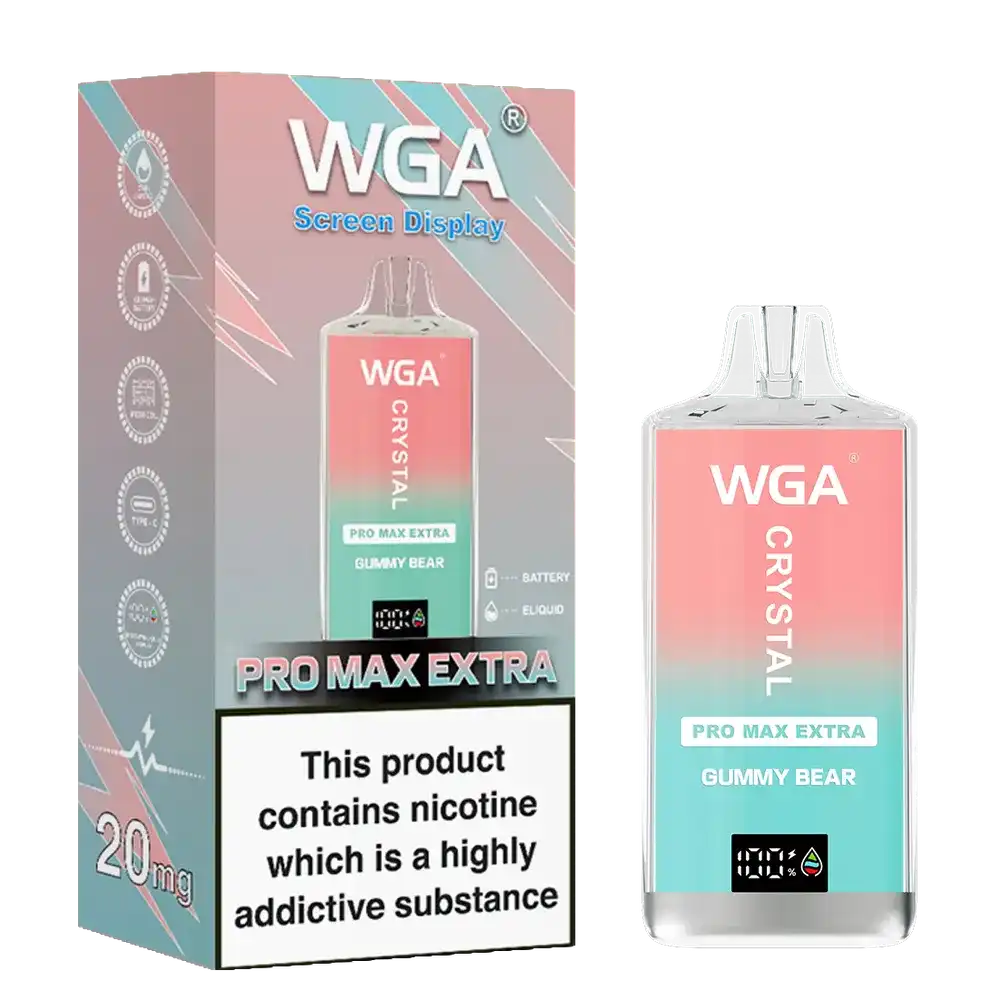 The WGA Crystal Pro Max Extra 15K (15000) Puffs Disposable Vape is the most popular rechargeable vape by WGA, a brand that specializes in manufacturing disposable vapes. WGA Vapes Series: Variety and Unmatched Performance